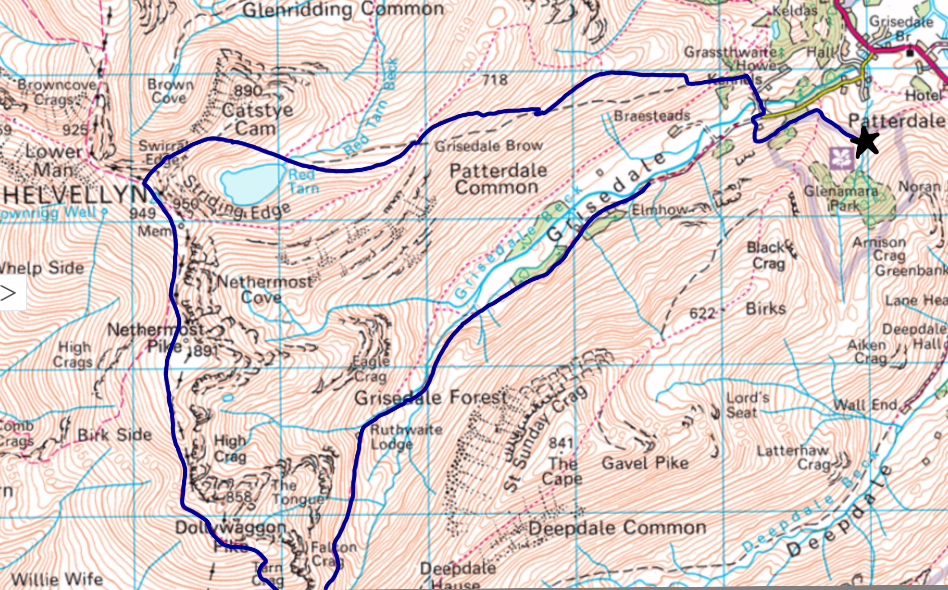 We started walking at around 9:30 quickly leaving Patterdale behind. We trekked up a small surprisingly steep grassy slope that left both of us out of breath before making it onto the track leading up to the hole in the wall. Upon reaching the hole in the wall I took one look at striding edge and decided that we weren’t going that way so instead we walked past the little lake and up onto the other ridge. After scrambling up the ridge we were thoroughly disappointed to find that mist shrouded any possibility of a nice view. Heading along the ridge in hope of shelter to eat lunch we found the shelter full with no other place to eat lunch we continued on our walk. Eventually after what seemed like hours we reached the top of dollywaggon where I continued to complain about being hungry and my dad told me for the umpteenth time that it was too cold and windy to stop. After making us stop half way down dollywaggon and being dramatic about how much I needed food we stopped for lunch. After that we walked down the valley following the stream back down towards Patterdale. We finished the walk at half three with sore feet and cold hands.